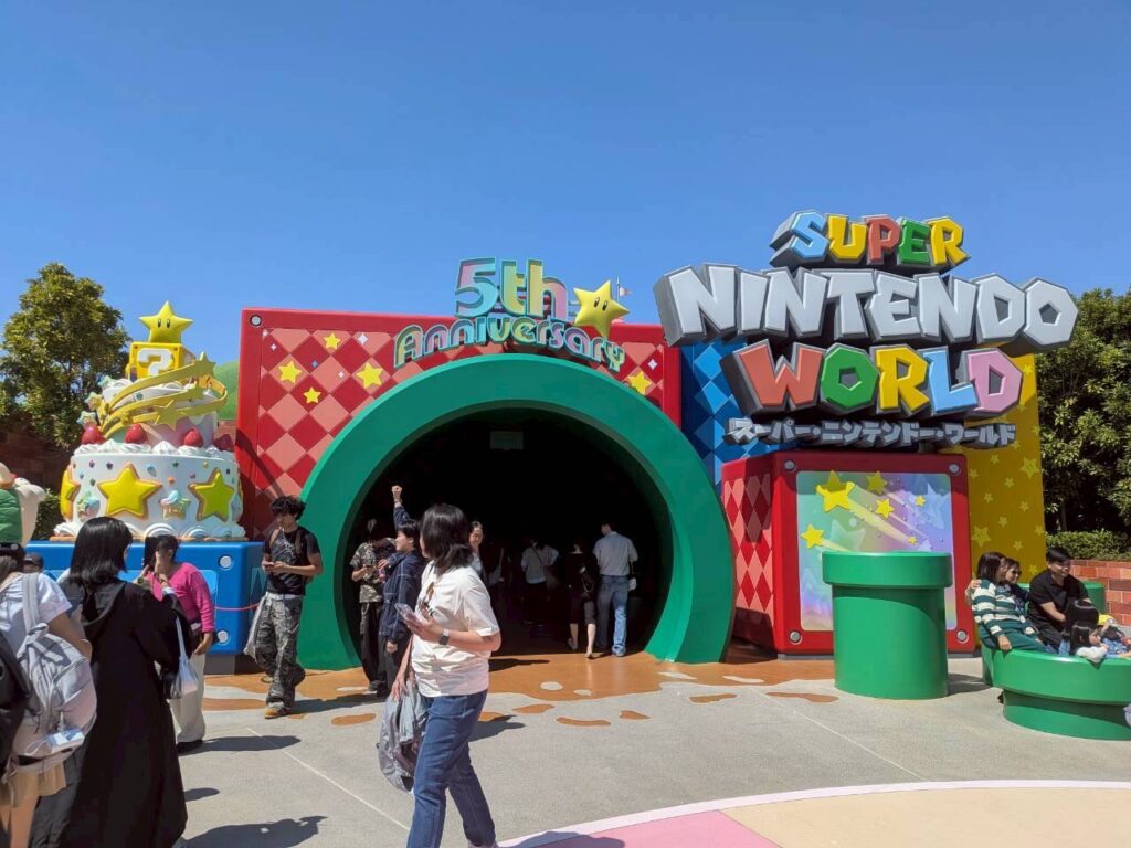 2日目は、どうしてもドンキーコングに乗りたくて、朝8時からパークに並びました。この時点ですでに多くの人が並んでいて、人気の高さを実感。 9時の開園と同時に、スーパー・ニンテンドー・ワールドへ直行。 到着した時には、すでに120分待ちの表示が出て... -