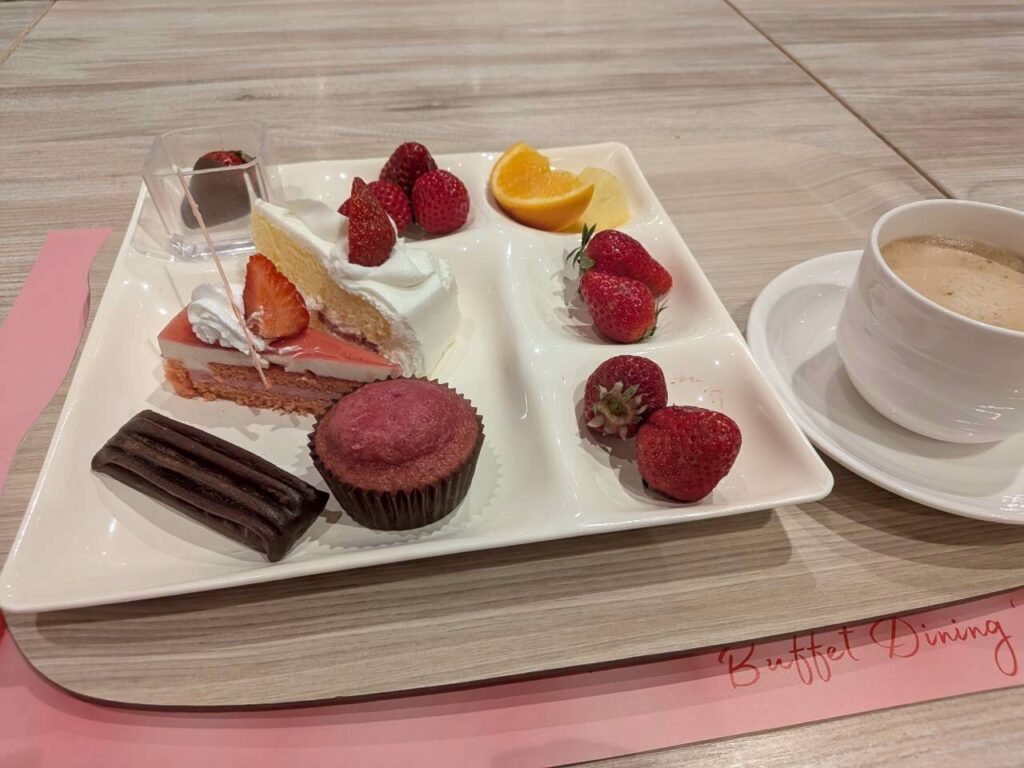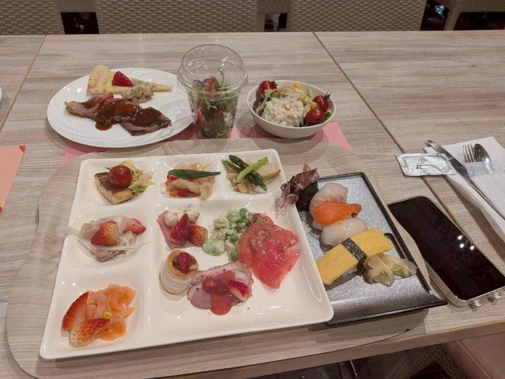 新鮮なサラダからメイン、デザートまで好きなものをたっぷり味わい、疲れた体にしみわたる至福のひとときでした。